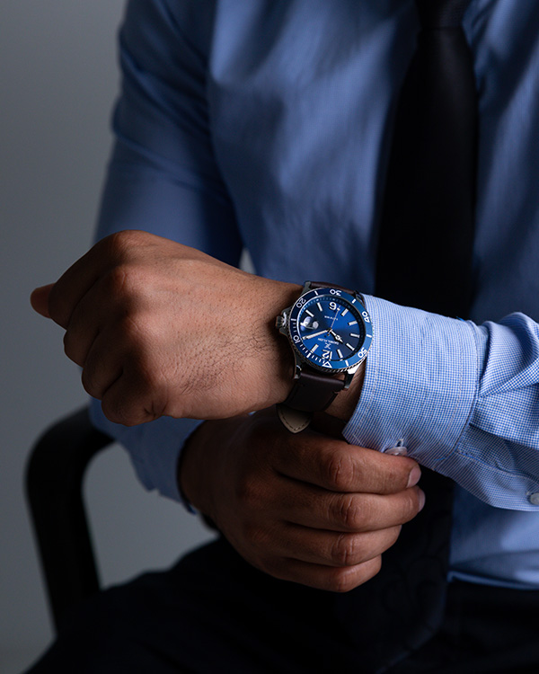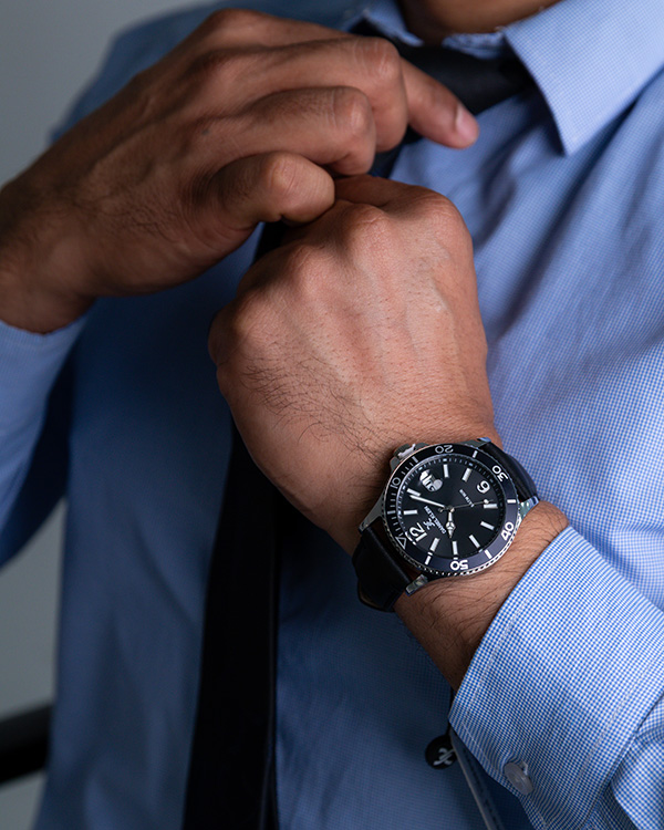 Elevate your style with confidence with the DK.1.13905 Men’s Watch from Daniel Klein The most successful and popular brand that features a spectrum of colors and strap styles to elevate your look . Featuring a sophisticated 151636 movement, this watch boasts a durable alloy case measuring 43 mm and a genuine leather band measuring 22 mm. The sunray dial & real index dial add to its elegance, and with water resistance up to 5 BAR, it’s trendy, and widely admired